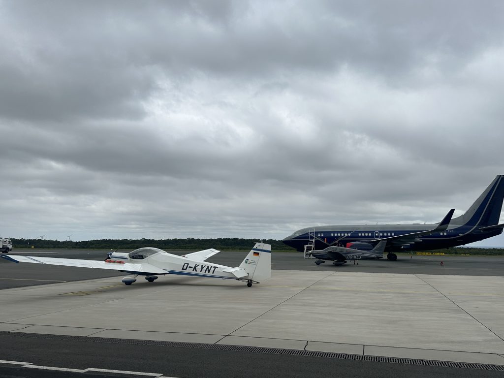 Nachdem alle Formalien geklärt waren, ging es endlich wieder in den Flieger – oder wie bei der allerersten Stunde, zunächst nur an den Flieger. Als Motorsegler unterscheidet sich der Falke schon etwas von der Remo.