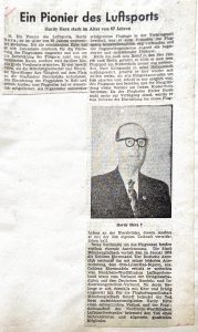 Als Organisator zahlreicher erfolgreicher Flugtage in der Vorkriegszeit bewährt, war er allen Freunden des Flugsports kameradschaftlich eng verbunden und stets begeisterter und mitreißender Förderer der fliegerischen Jugend.